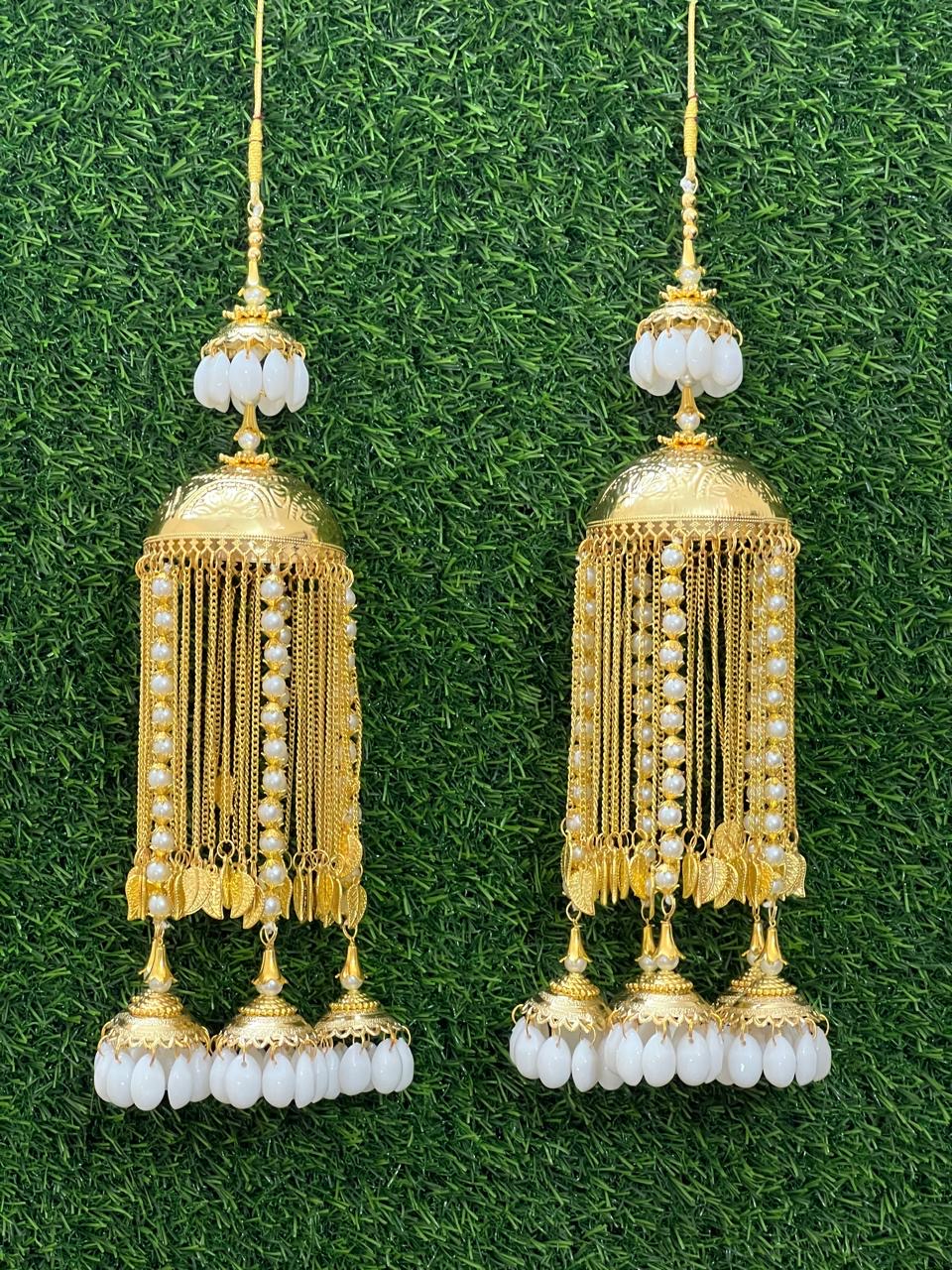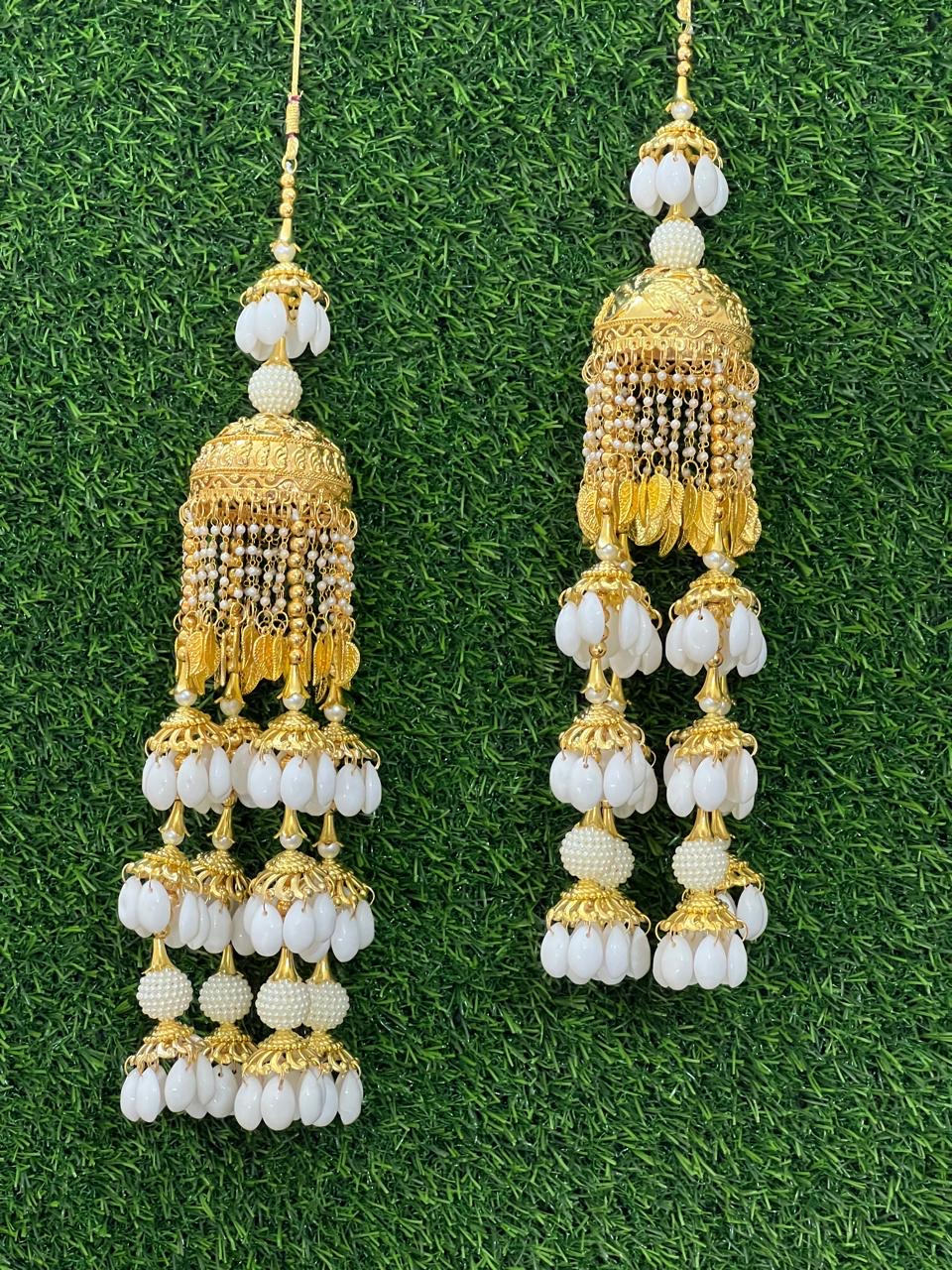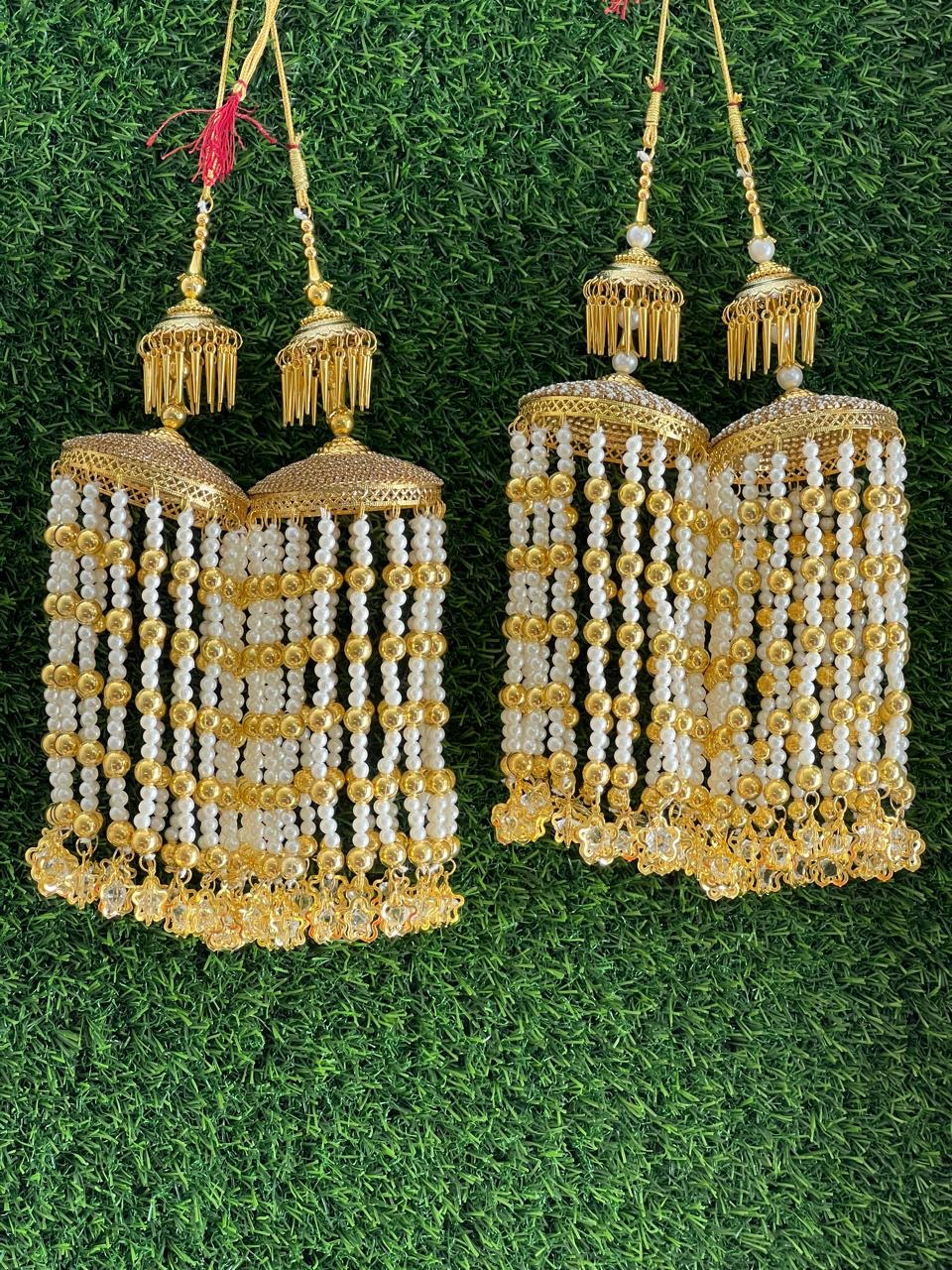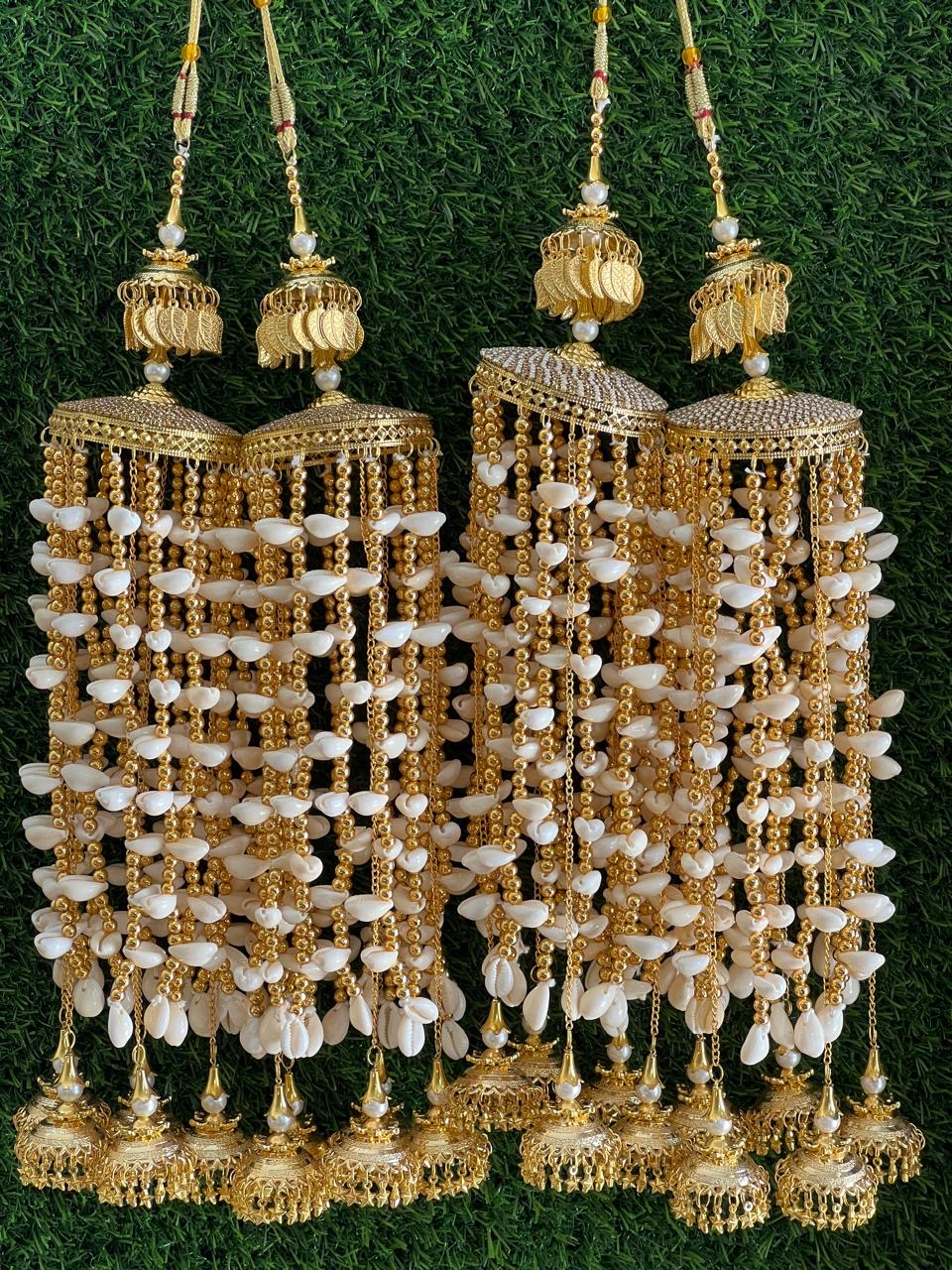 Enhance your bridal charm with these exquisite Bridal Kaleere, a timeless symbol of love and blessings. Handcrafted with intricate detailing, each kaleera features delicate embellishments of pearls, beads, and golden danglers that sway gracefully with every movement. Perfectly designed to complement both traditional and modern bridal looks, these kaleere add a royal touch to your wedding attire.