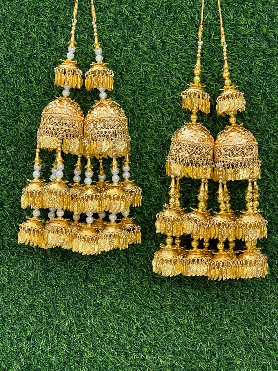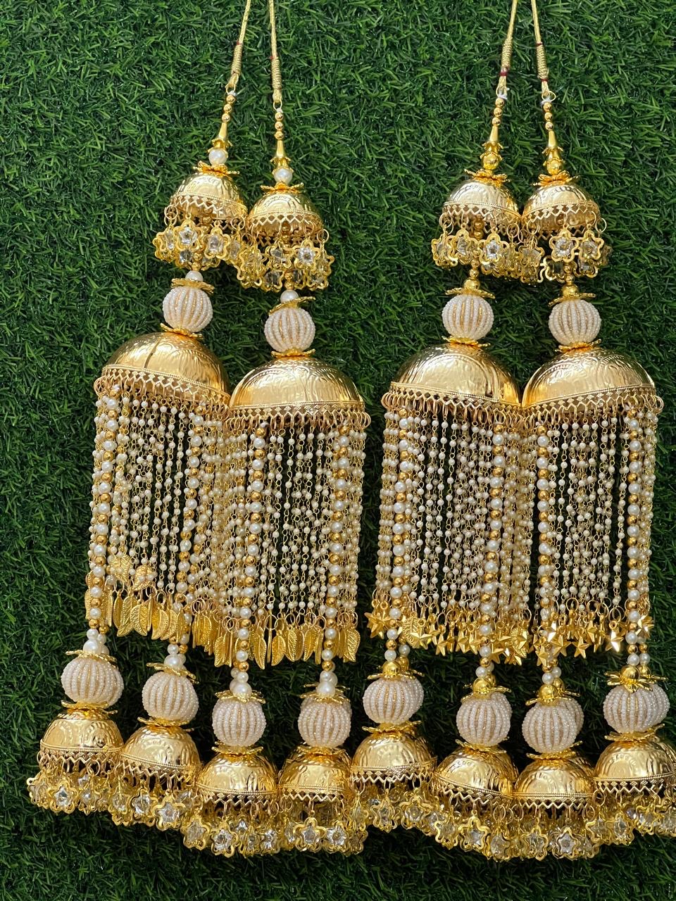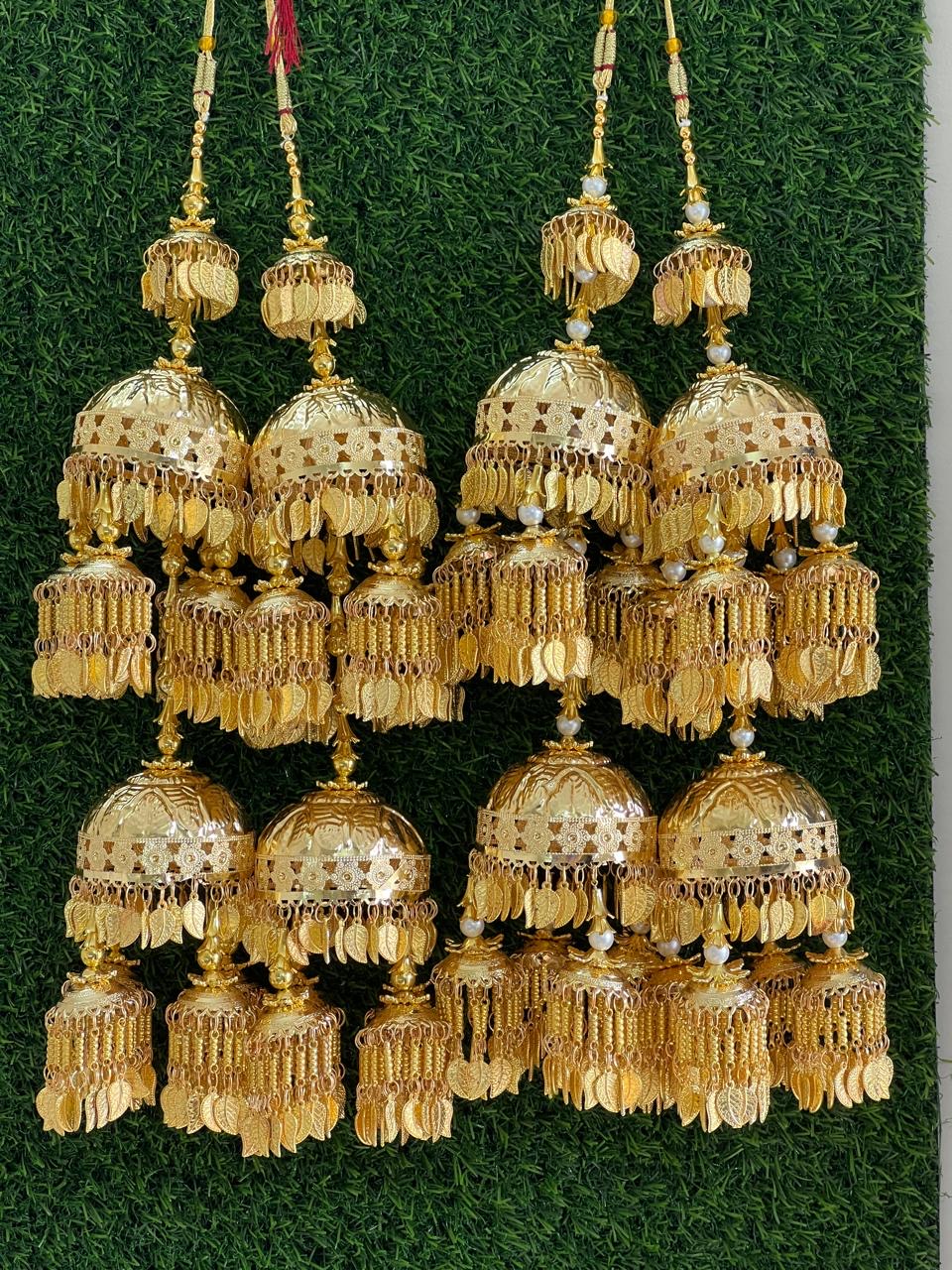 Enhance your bridal charm with these exquisite Bridal Kaleere, a timeless symbol of love and blessings. Handcrafted with intricate detailing, each kaleera features delicate embellishments of pearls, beads, and golden danglers that sway gracefully with every movement. Perfectly designed to complement both traditional and modern bridal looks, these kaleere add a royal touch to your wedding attire.