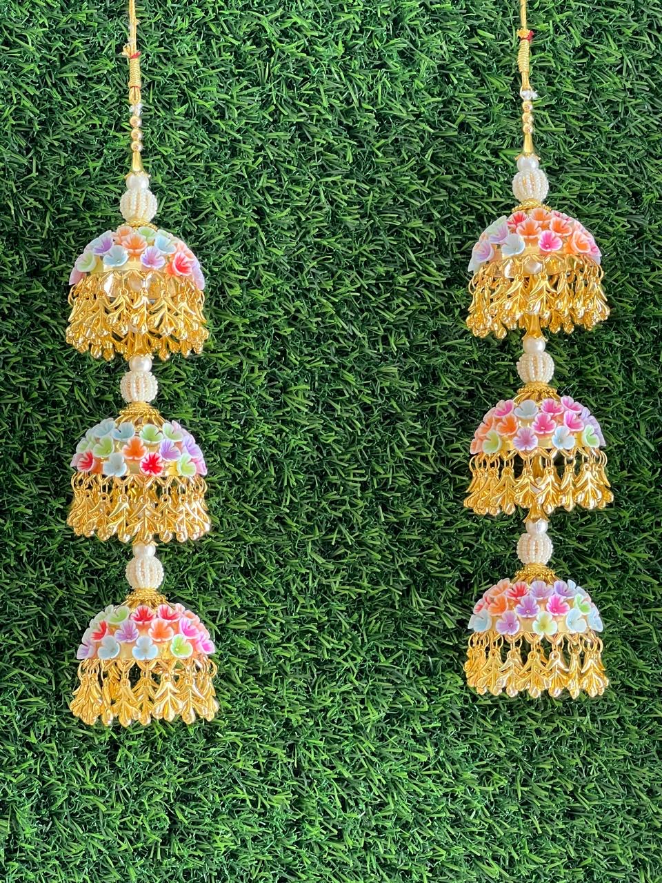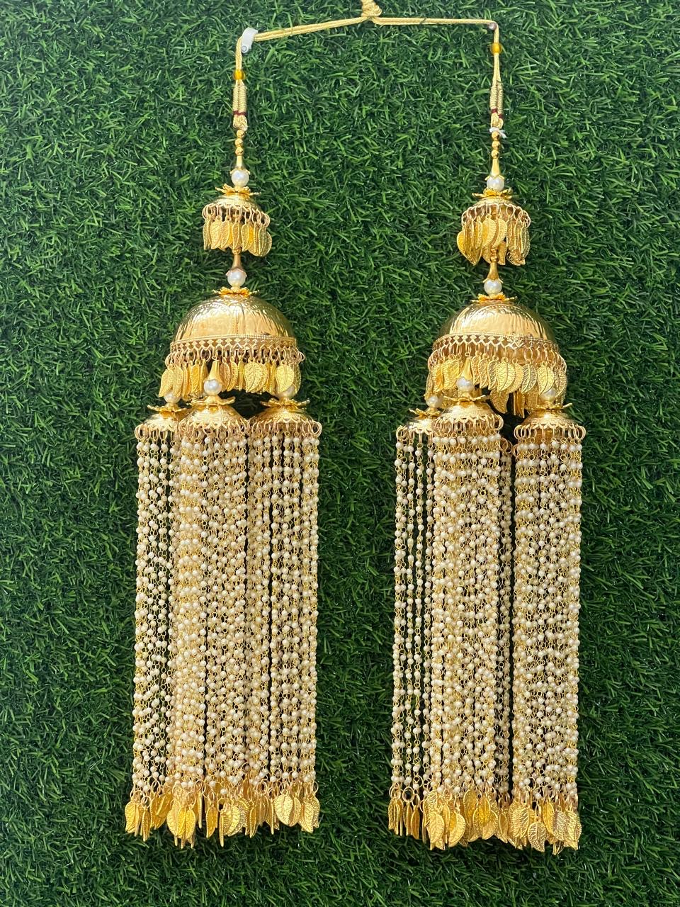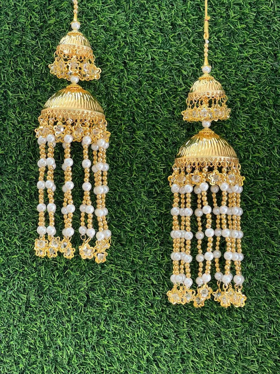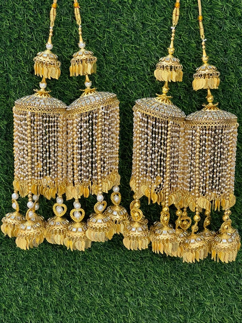 Enhance your bridal charm with these exquisite Bridal Kaleere, a timeless symbol of love and blessings. Handcrafted with intricate detailing, each kaleera features delicate embellishments of pearls, beads, and golden danglers that sway gracefully with every movement. Perfectly designed to complement both traditional and modern bridal looks, these kaleere add a royal touch to your wedding attire.